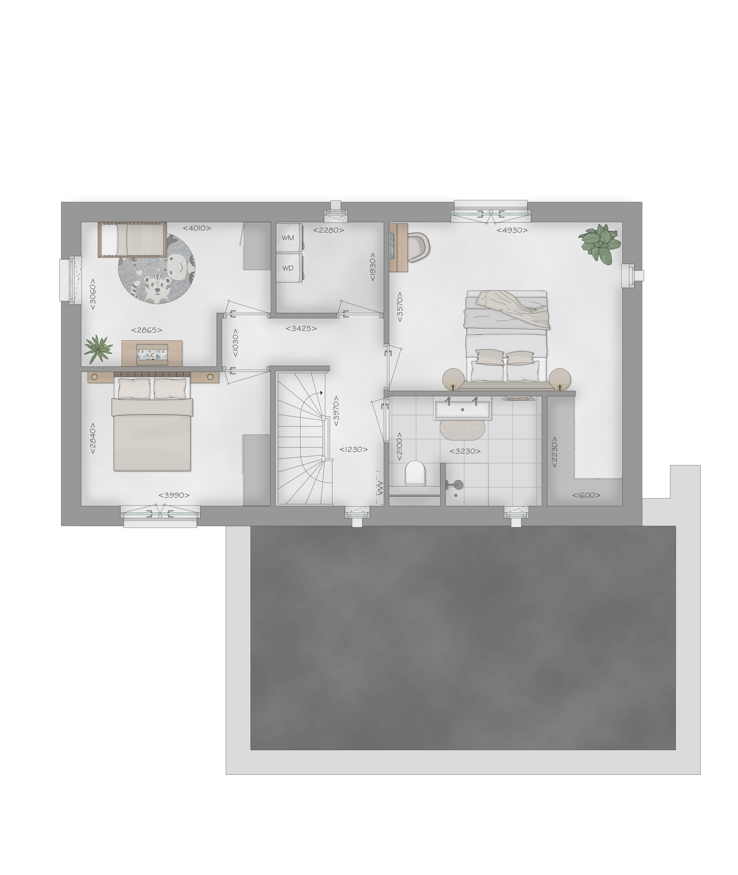 Binnen bieden de woningen, naast een luxe afwerkingsniveau, volop flexibiliteit: kies bijvoorbeeld voor een kantoor aan huis of creëer extra slaapkamers om de woning volledig af te stemmen op jouw woonwensen.